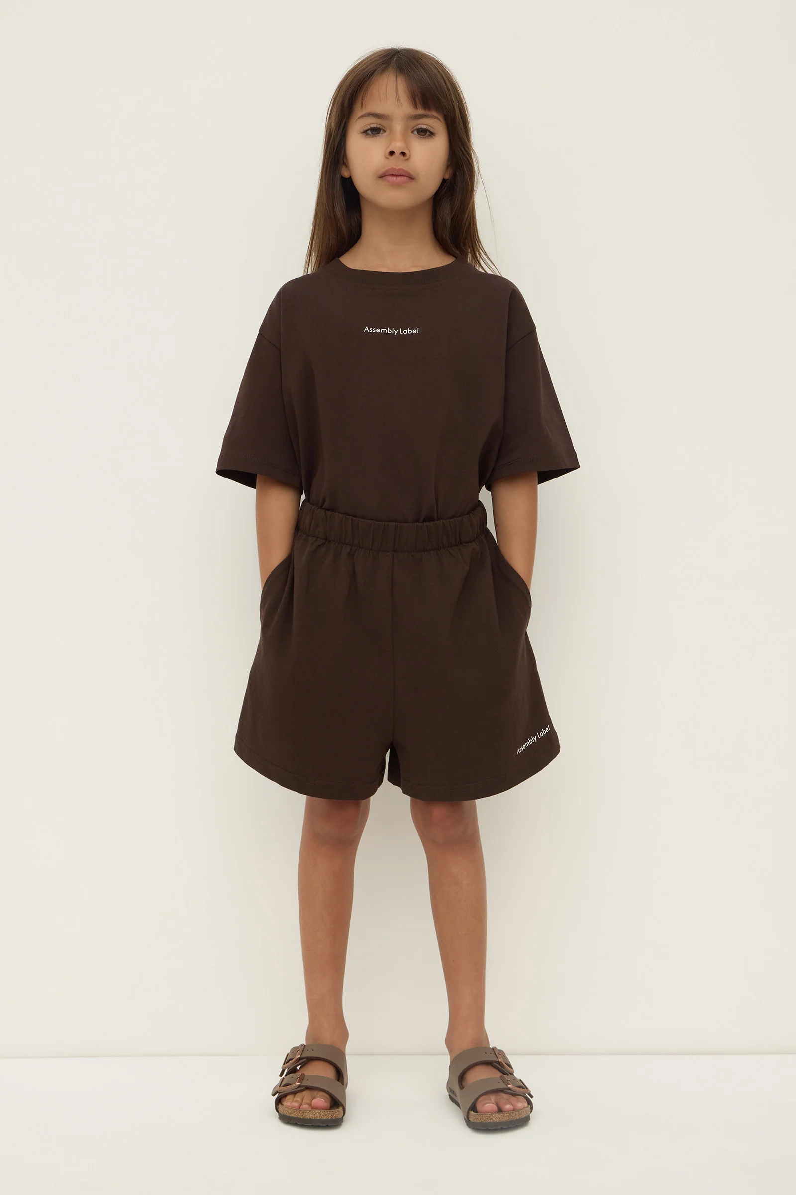 The Kids Unisex Atelier Logo Short in ganache is a longline relaxed fit short, crafted from 100% cotton, with an elasticated waistband and logo detail on the leg.