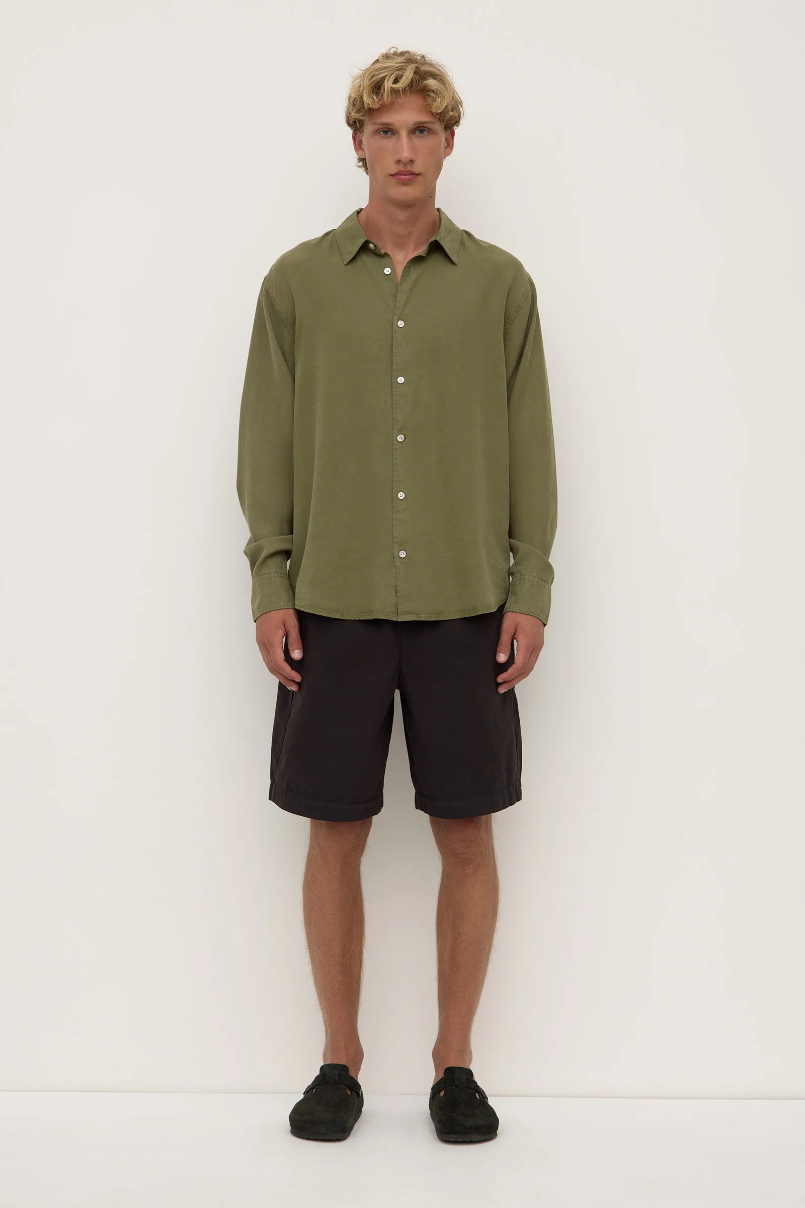 The Miller Long Sleeve Shirt in chive is made from a premium soft fabric blend, offering a relaxed, breathable, and durable fit
