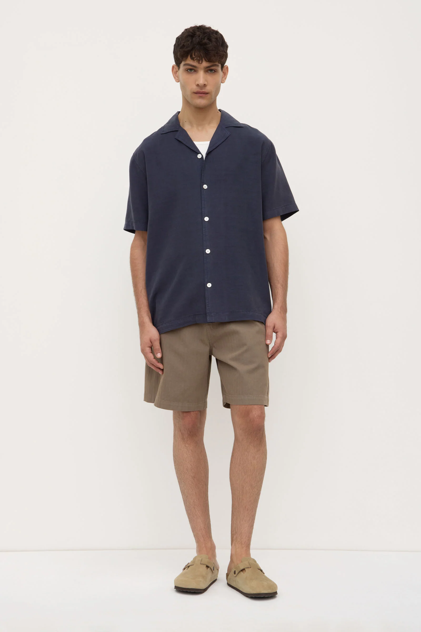 The Miller Short Sleeve Shirt in true navy is a relaxed button-up made from a premium lyocell-linen blend with a smooth, soft feel and breathable finish.